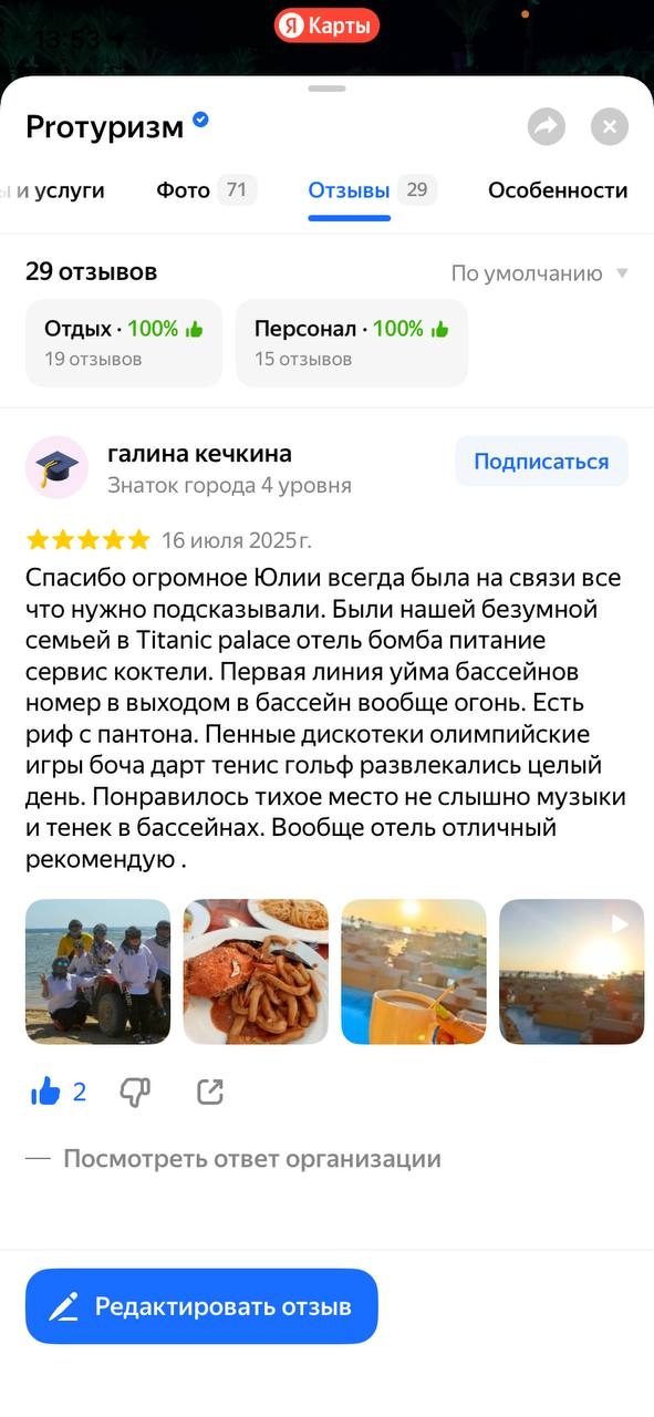 Основатель компании "PROтуризм" с 2011 года. Менеджер, а также директор, который влюбляет с первого взгляда большинство туристов. Всегда на связи и с душой к клиентам!